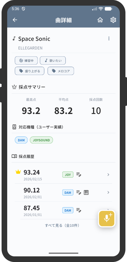 - カラオケ機種・キー・メモも記録